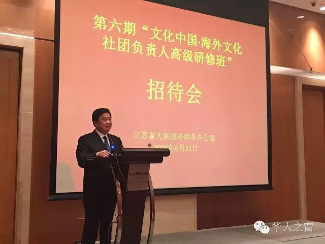 当晚,江苏省人大常委会副主任刘永忠会见海外嘉宾。他对研修班一行表示欢迎,并表示,海外文化社团负责人长期从事文化社团工作,在促进华侨华人传承民族文化、弘扬中华传统文化方面,在关心和支持中国文化产业发展、开展国际文化交流方面,都做了大量有益的工作,江苏的进步和发展离不开海外侨胞的参与和支持。